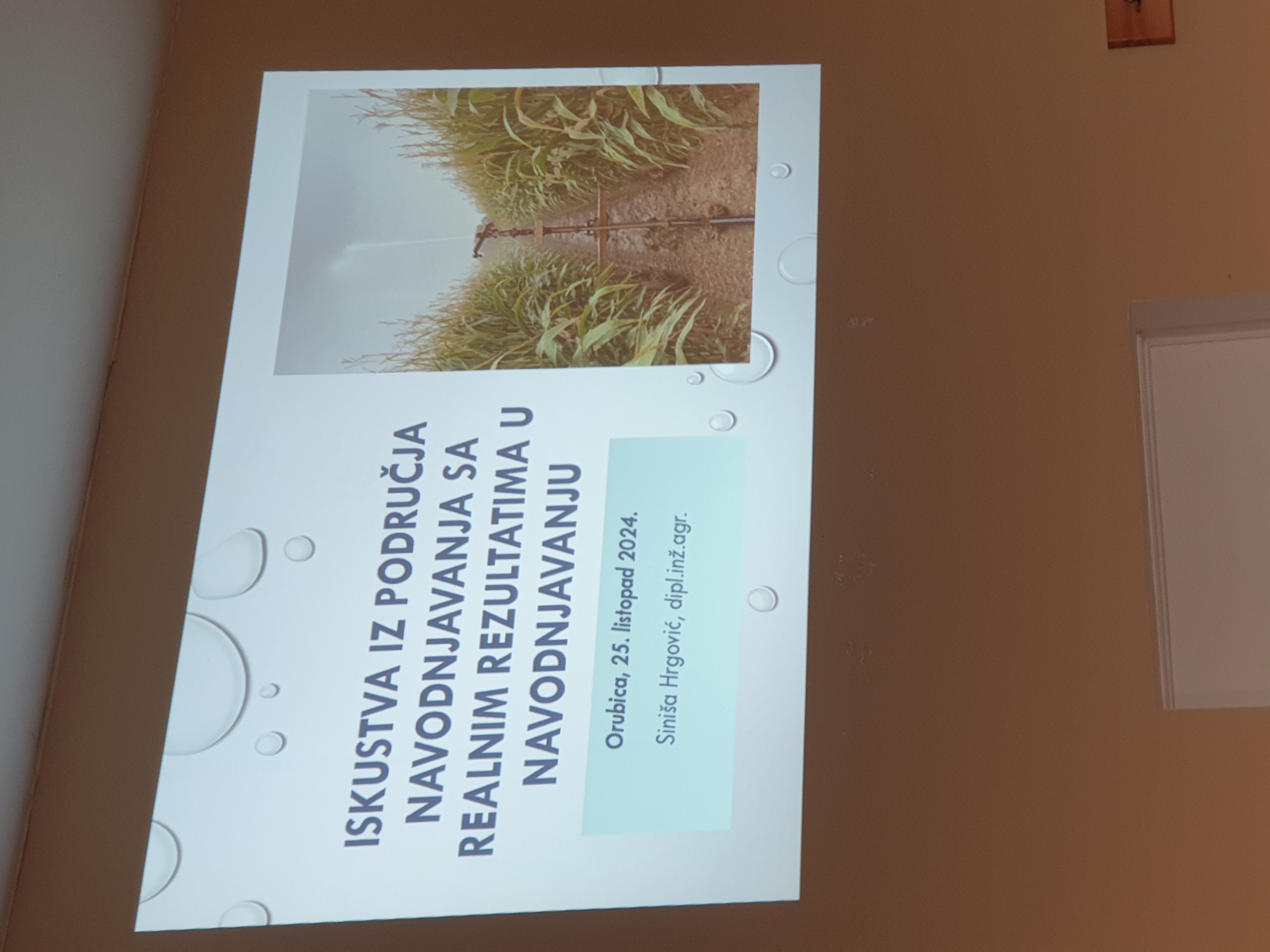 Okupljene je, u ime Brodsko-posavske županije pozdravio pročelnik Upravnog odjela za gospodarstvo i poljoprivredu Željko Burazović koji je istaknuo kako današnja edukacija kroz prezentaciju primjera iz prakse, iako u Orubici prevladava povrtlarska proizvodnja, nudi primjenjiva stečena iskustva u navodnjavanju ratarskih kultura.